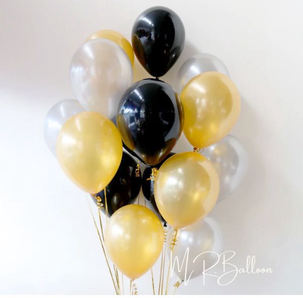 1. 10吋/25cm乳膠金銀黑色/x10顆(充氦氣)